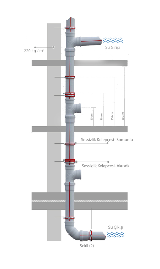 Binalardaki atık su tesisat sisteminde oluşan gürültüyü önlemek amacıyla tasarlanmıştır.