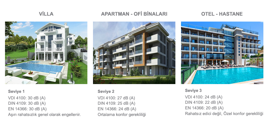 Sessizlik Testi: DIN 4109 , VDI 4100 , EN 14366
