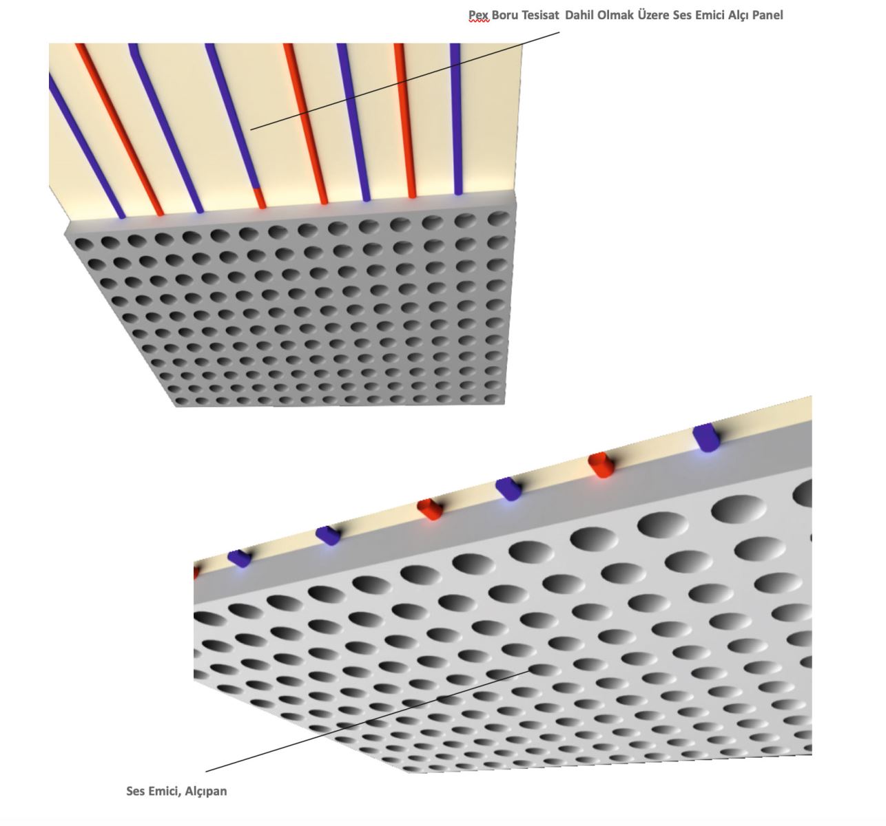 Akustik alçı levha tavan, hem ısıtma- soğutma yapmasının yanında ses yalıtımı sağlayan çok yönlü kullanımlar için geliştirilmiş bir tavan radyant sistemidir.